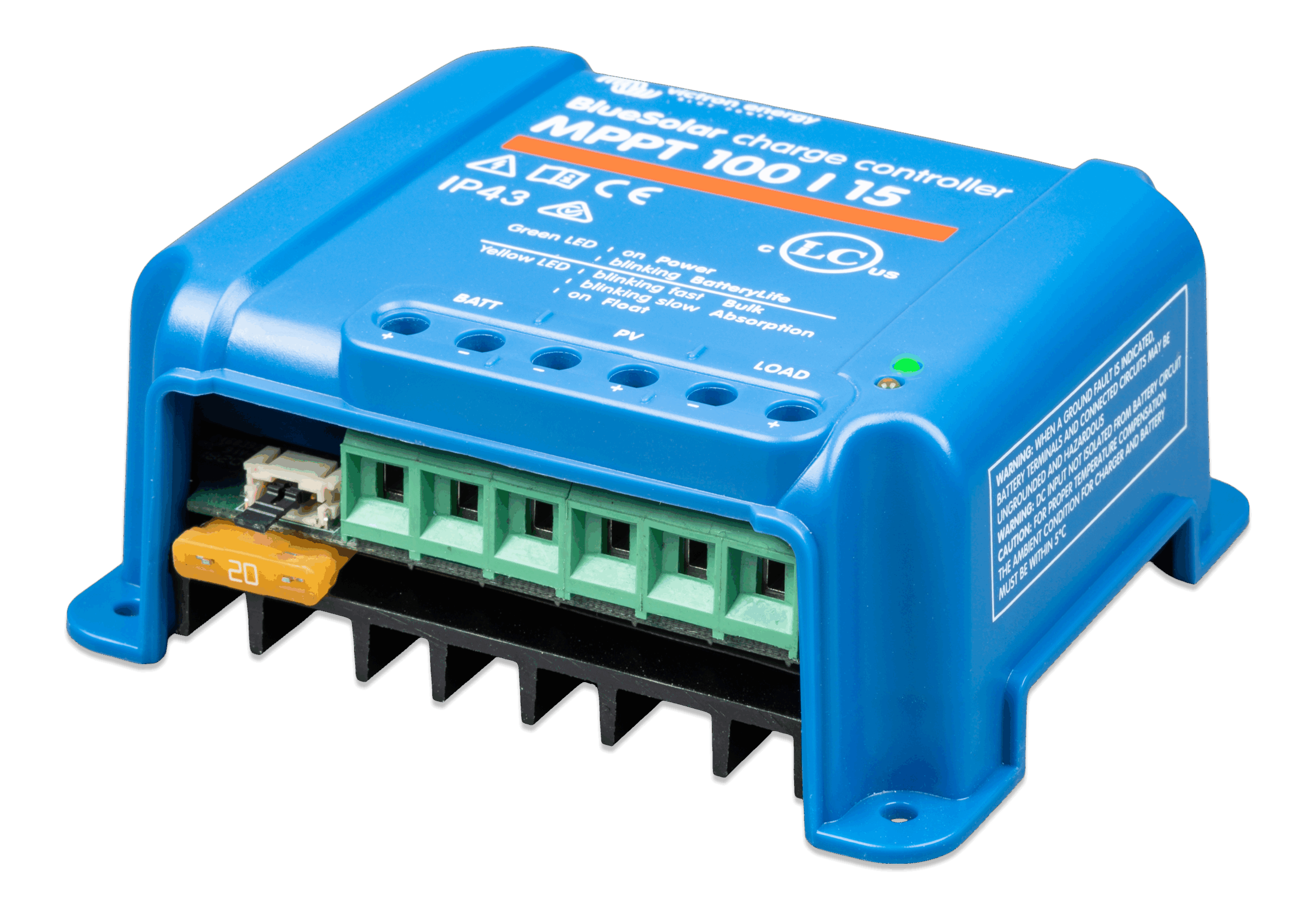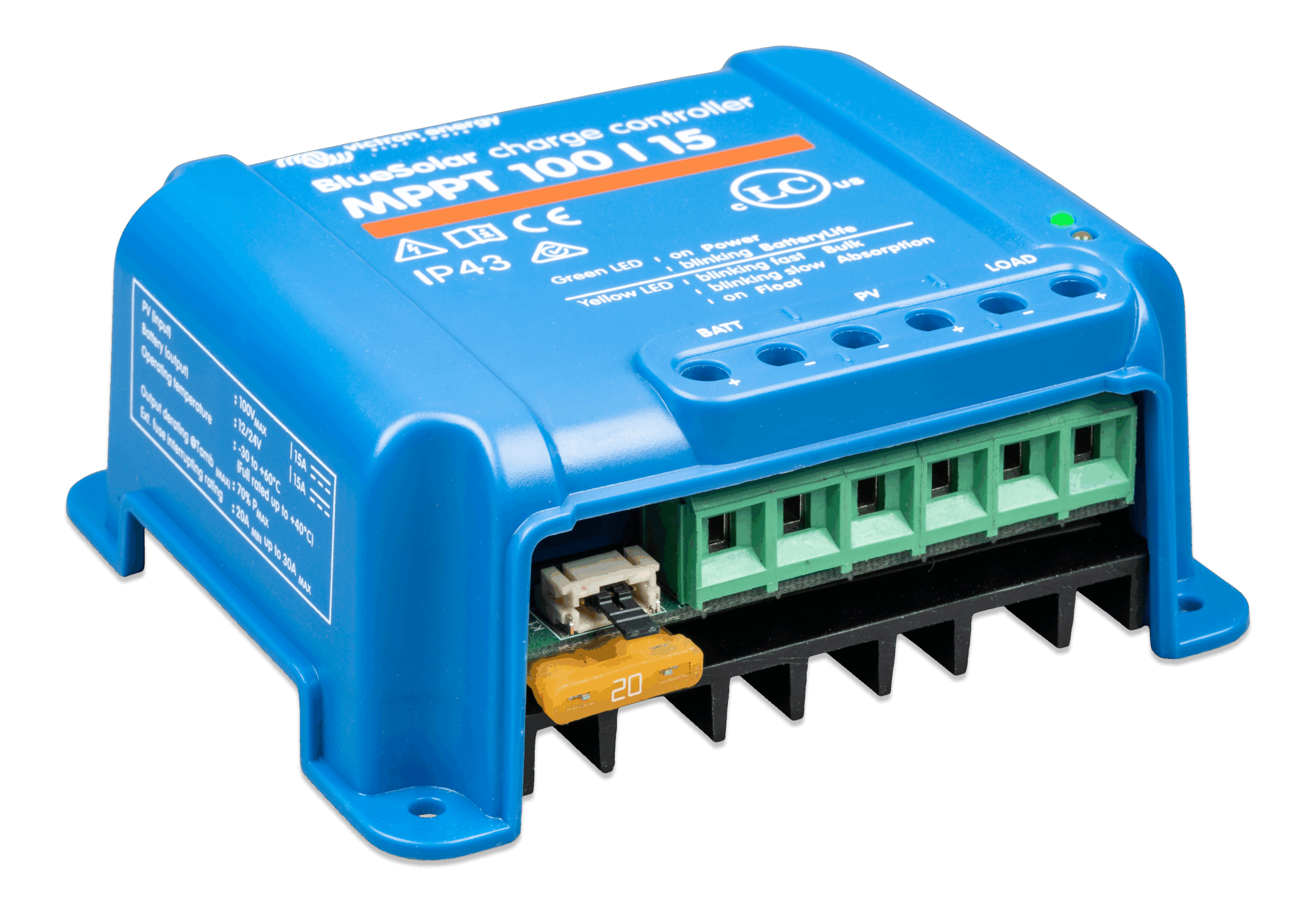 The intelligent Load output function prevents damage caused by running batteries ‘flat’. You can configure the voltage at which BlueSolar disconnects a load – thereby preventing excessive drain on your batteries. And here’s the clever bit: BlueSolar will attempt a 100% recharge every day. If it can’t – during periods of poor weather – it raises the disconnect voltage, daily, until it achieves success. We call this feature BatteryLife because it maintains the health, and extends the life of your battery.