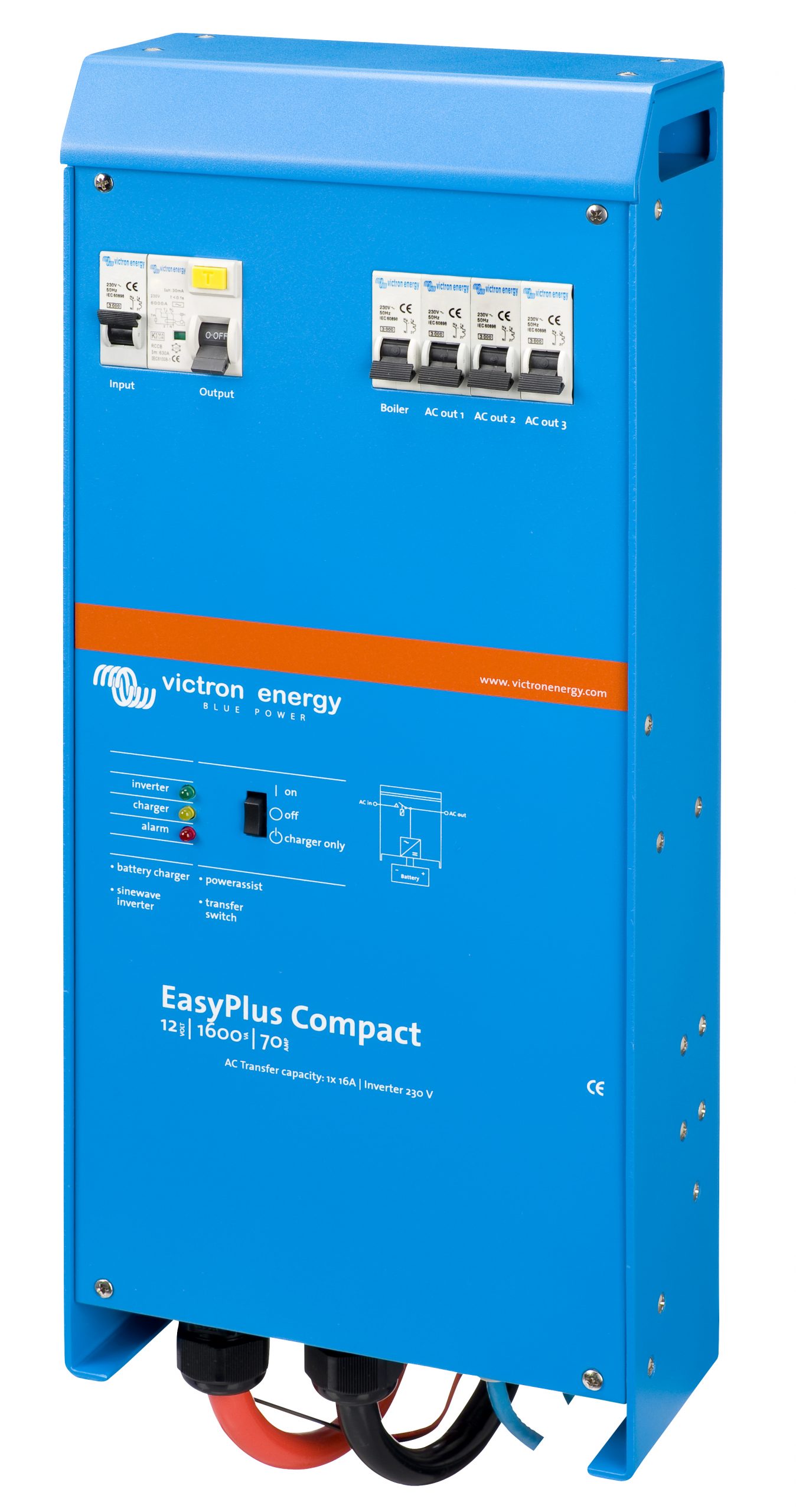 The EasyPlus is a powerful true sine wave inverter, a sophisticated battery charger that features