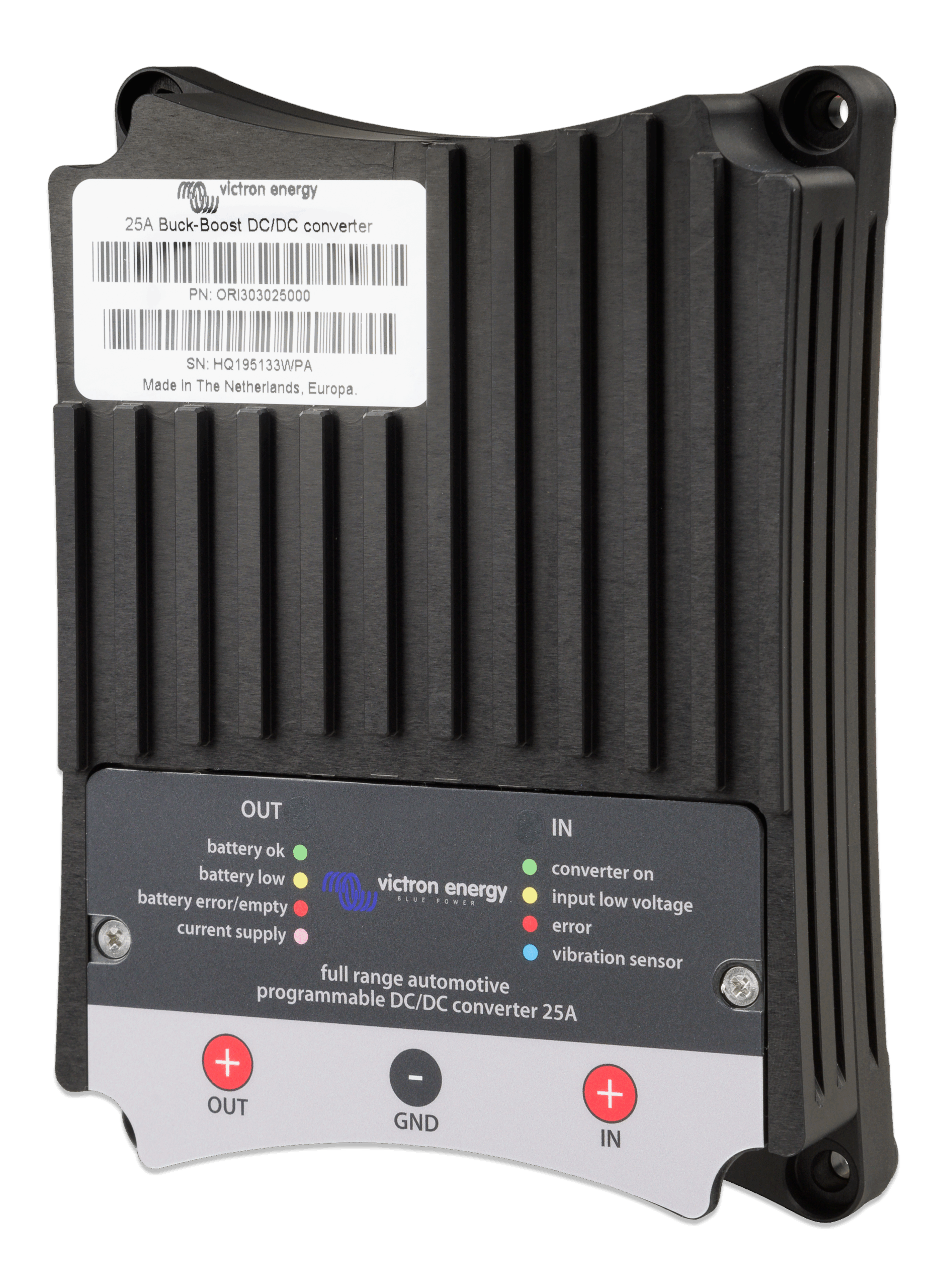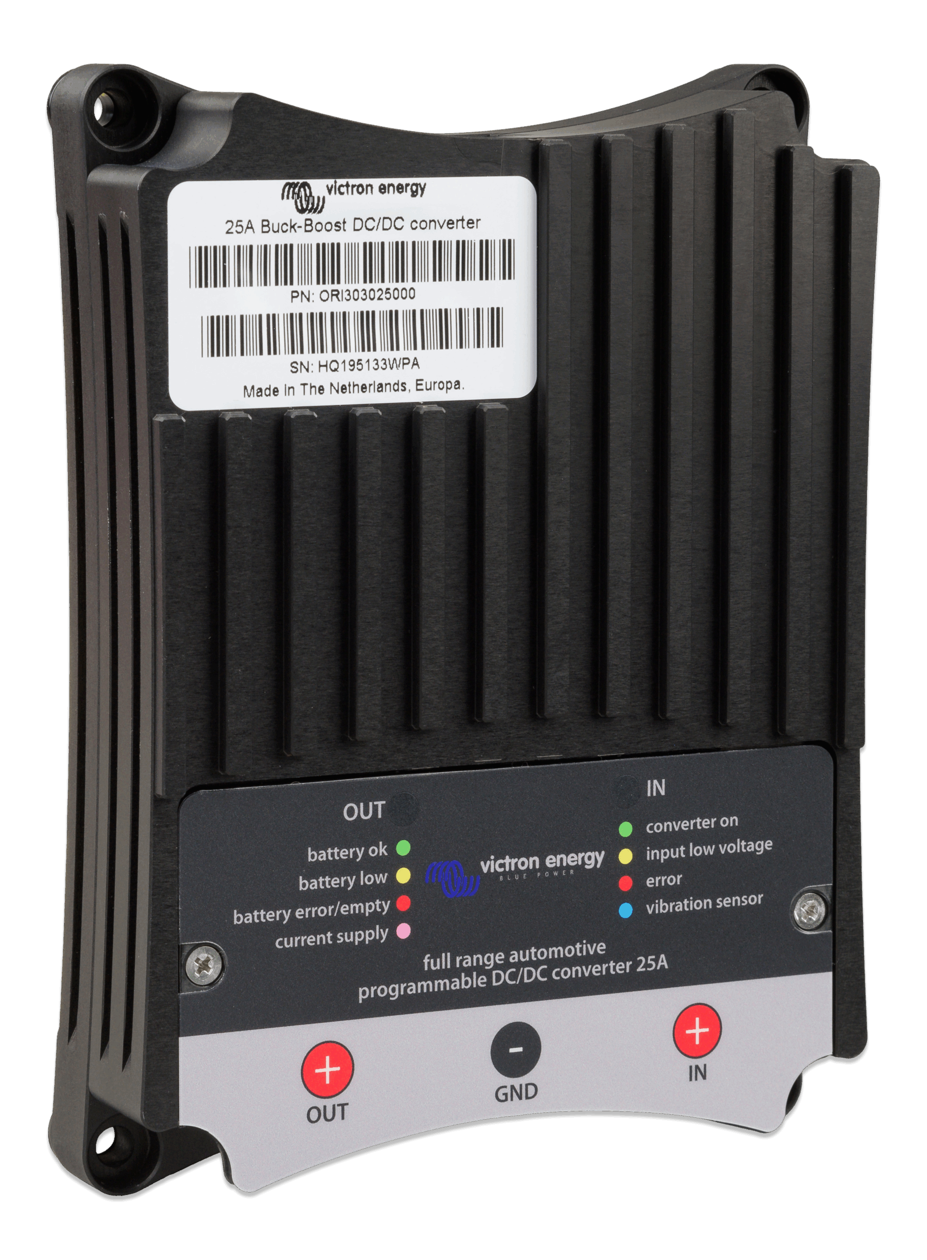 The Buck-Boost DC-DC Converter is a DC-DC Converter for charging a 12V or 24V service battery in vehicles with a smart alternator. The converter will charge the auxiliary battery with a pre-set charge voltage, eliminating high voltages (e.g. Mercedes: 15,4V) and low voltages.