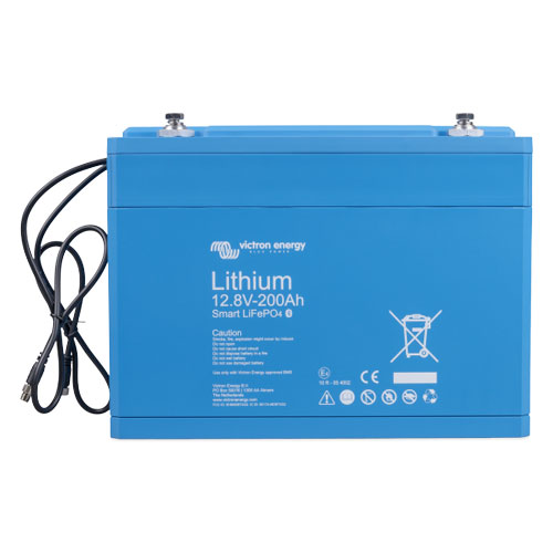 Victron Lithium Ion Energy Battery. 200Ah 12.8V 22kg (BAT512120610) 2.560 kWh nominal capacity – 1.792 kWh usable – Built in Bluetooth. REQUIRES BMS INTERFACE.