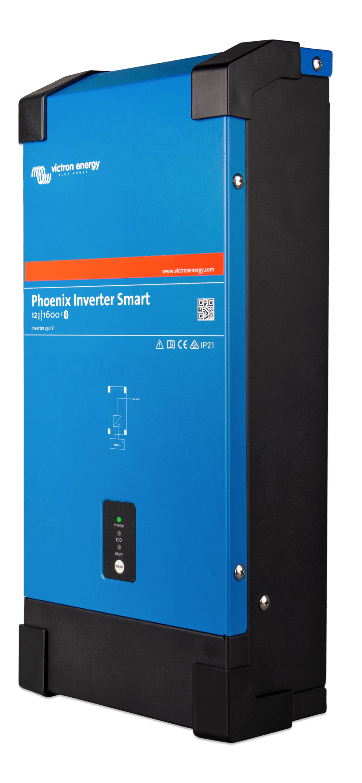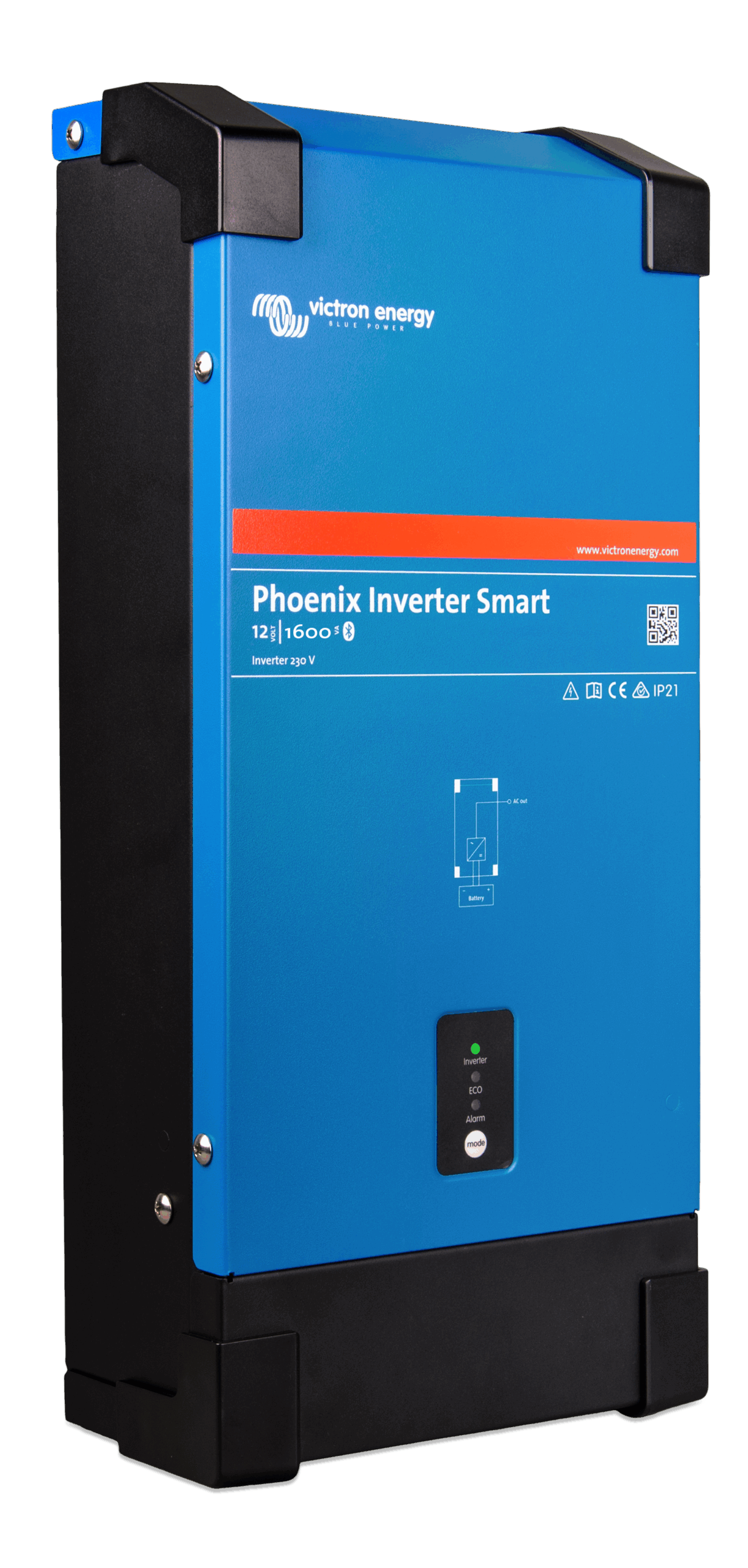 The Phoenix Inverter Smart is an efficient and reliable inverter. Built on our proven and field tested Phoenix inverter platform, it now comes with a new slimmer design and full metal casing. Models are available in 1600VA, 2000VA, 3000VA and 5000VA for 12, 24 or 48V systems.