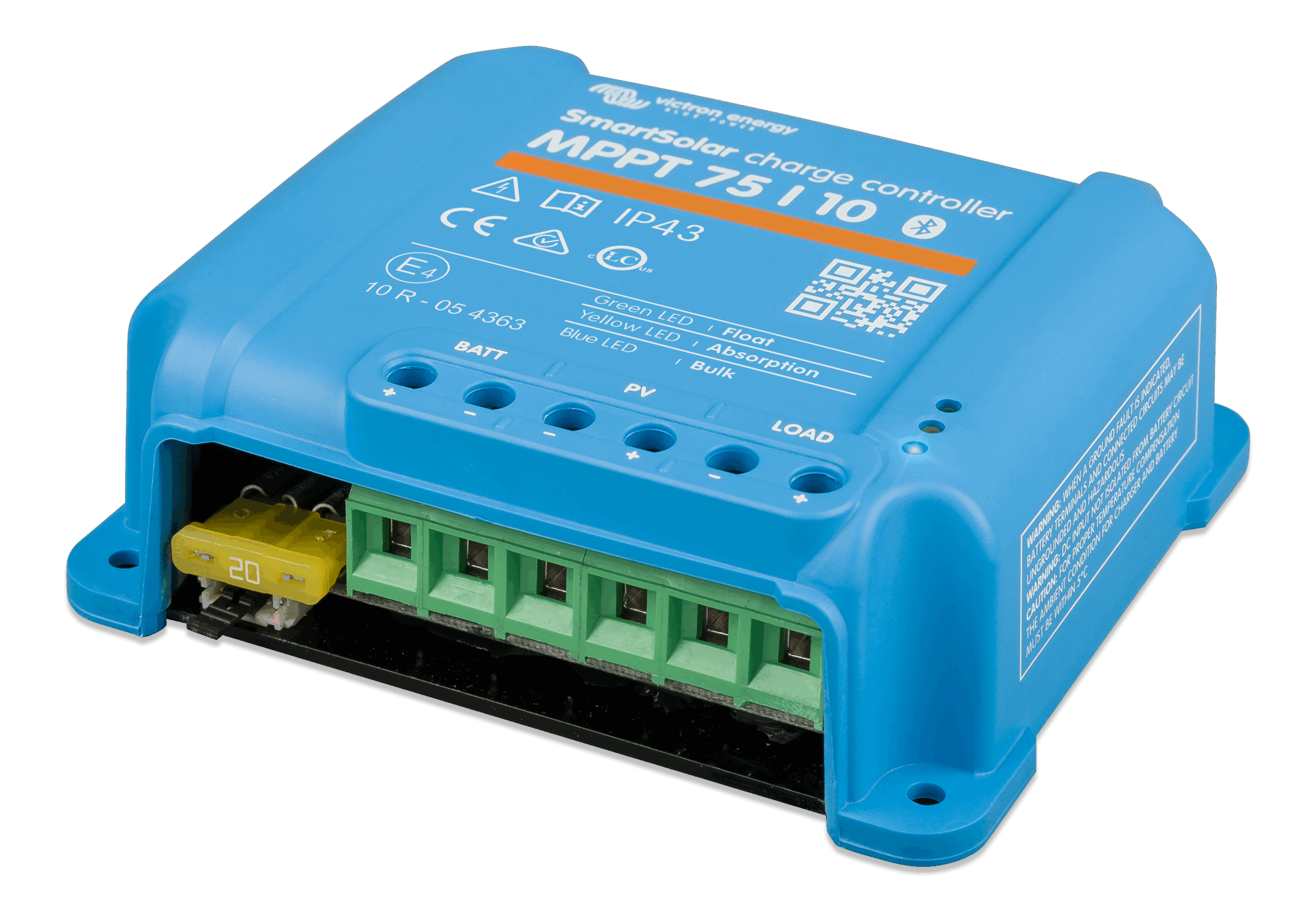 The intelligent Load output function prevents damage caused by running batteries ‘flat’. You can configure the voltage at which BlueSolar disconnects a load – thereby preventing excessive drain on your batteries. And here’s the clever bit: BlueSolar will attempt a 100% recharge every day. If it can’t – during periods of poor weather – it raises the disconnect voltage, daily, until it achieves success. We call this feature BatteryLife because it maintains the health, and extends the life of your battery.